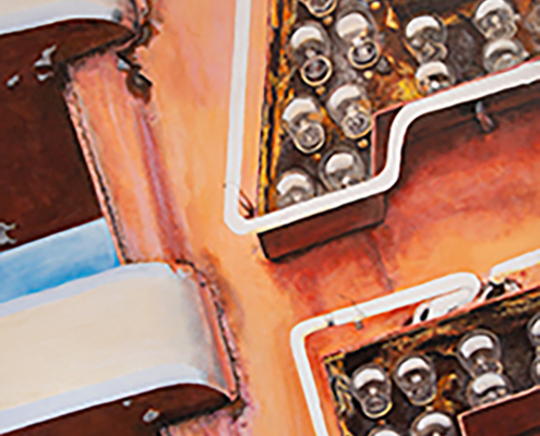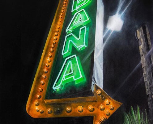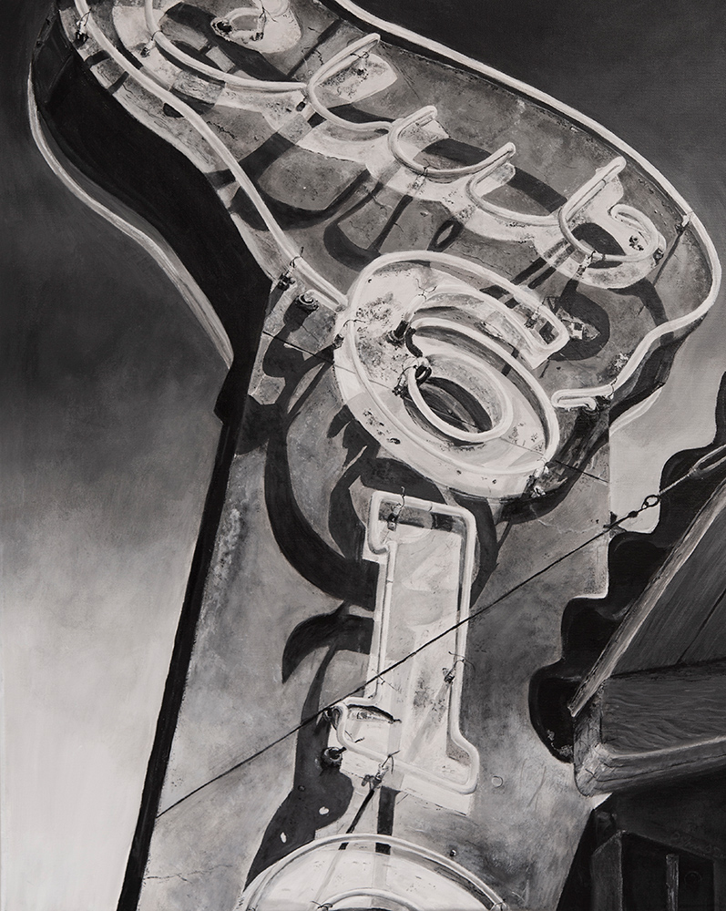 A South Bay photographer turned painter, Shane O’Donnell brings his passion for Americana to Neon + Rust, a showcase of his recent canvases exploring vintage neon signs and their aging patina. What began as a personal challenge to elevate with paint what he captured with his camera, O’Donnell has committed to documenting these cultural relics of a bygone era. The result is a body of work that portrays their decaying beauty with remarkable precision and a fresh perspective that merits a closer look.