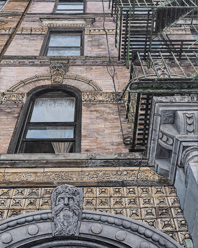 His process involves taking multiple photographs of the subject, designing the composition on his computer, and then transferring the outline onto a canvas before applying paint. Although they appear photorealistic, there is always an element of artistic license in the execution. As a result, the finished canvas never exactly matches his original photograph.